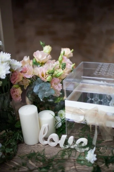 Clear Acrylic Card box with lid. Used as wishing well. Vinal Custom Sign available for additional $25